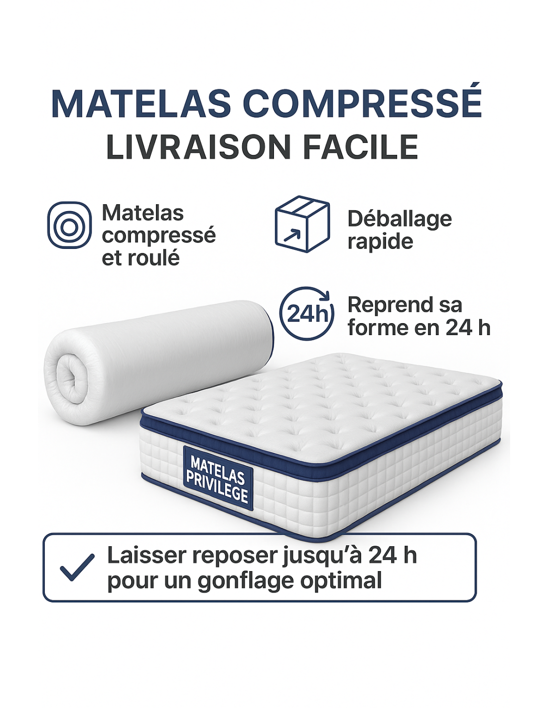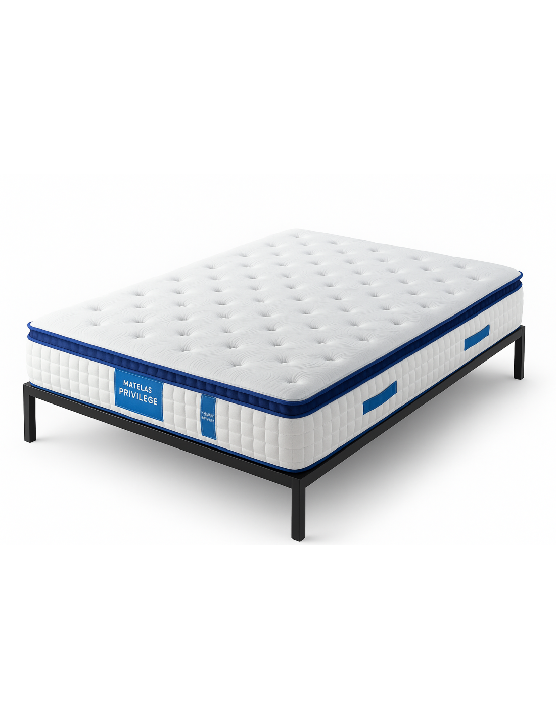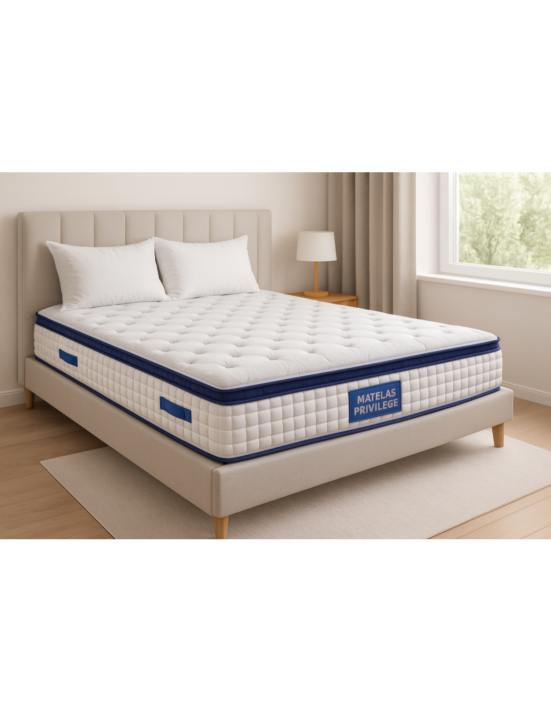 Épaisseur 28 cm : Structure multicouches avec ressorts ensachés et surmatelas en mousse HR pour un confort optimal et une indépendance de couchage parfaite.