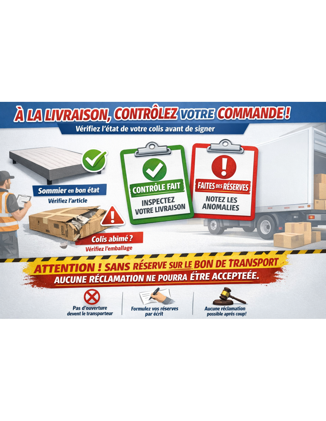 • Fabrication Française - Direct Fabricant : En tant que fabricant direct de literie en France, nous proposons des produits de haute qualité avec une garantie de 2 ans. Nos sommiers sont livrés avec 4 pieds offerts.