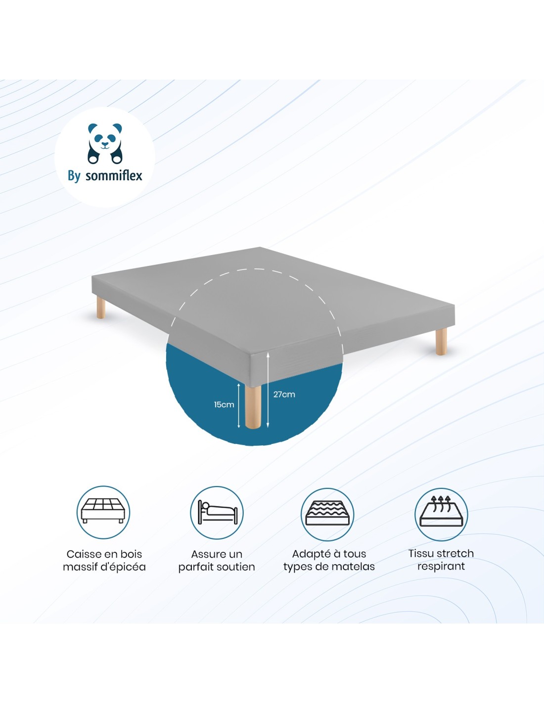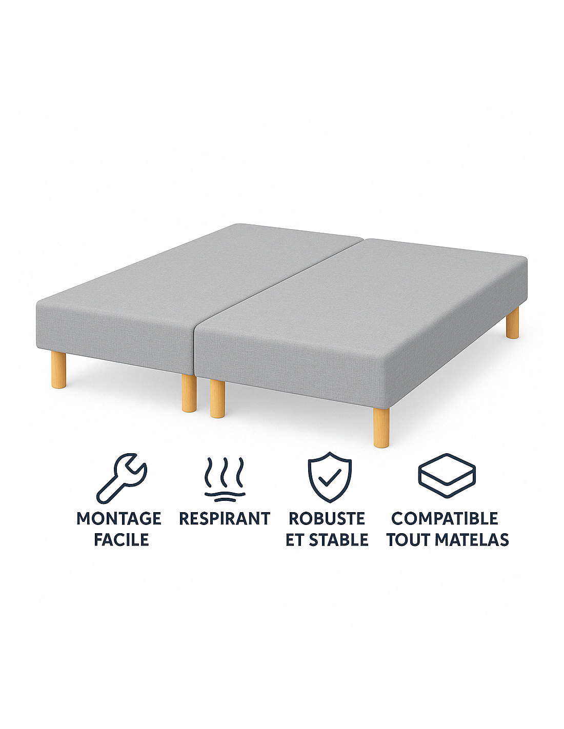 - Sommier livré monté, prêt à l’installation.