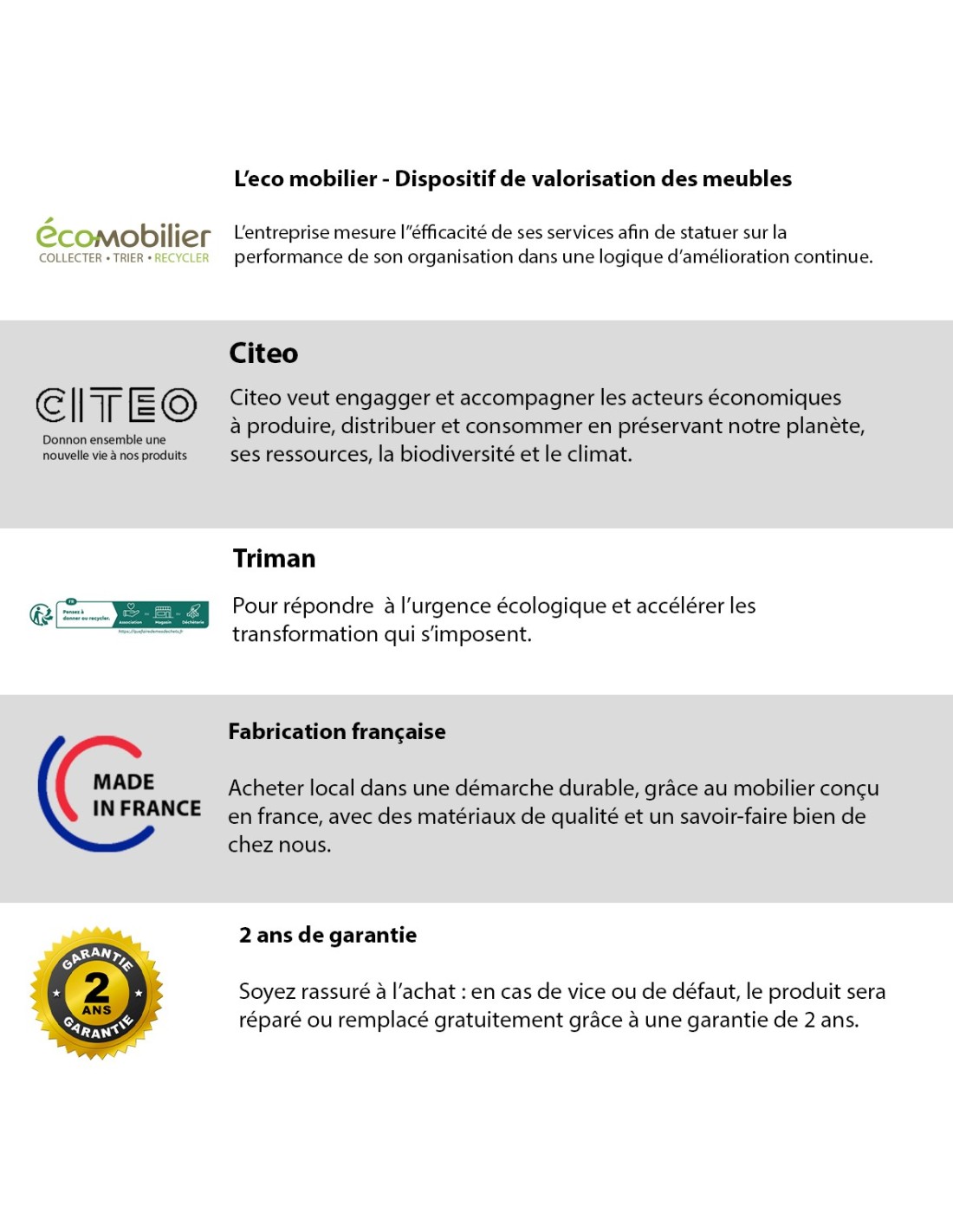 - Fabrication Française : Gage de qualité et de savoir-faire.